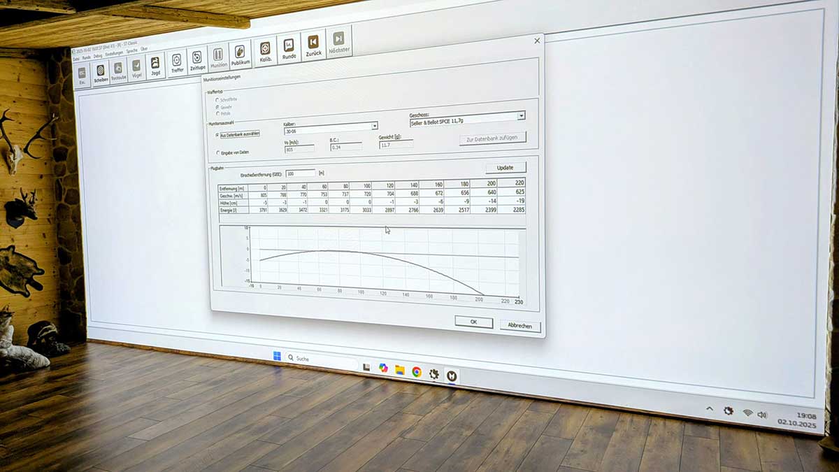 Natürlich können wir auch bei der Büchse die verschiedensten Kaliber einstellen und so die Ergebnisse realitätsnah wiedergeben.