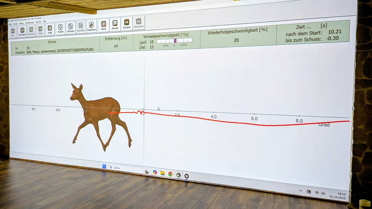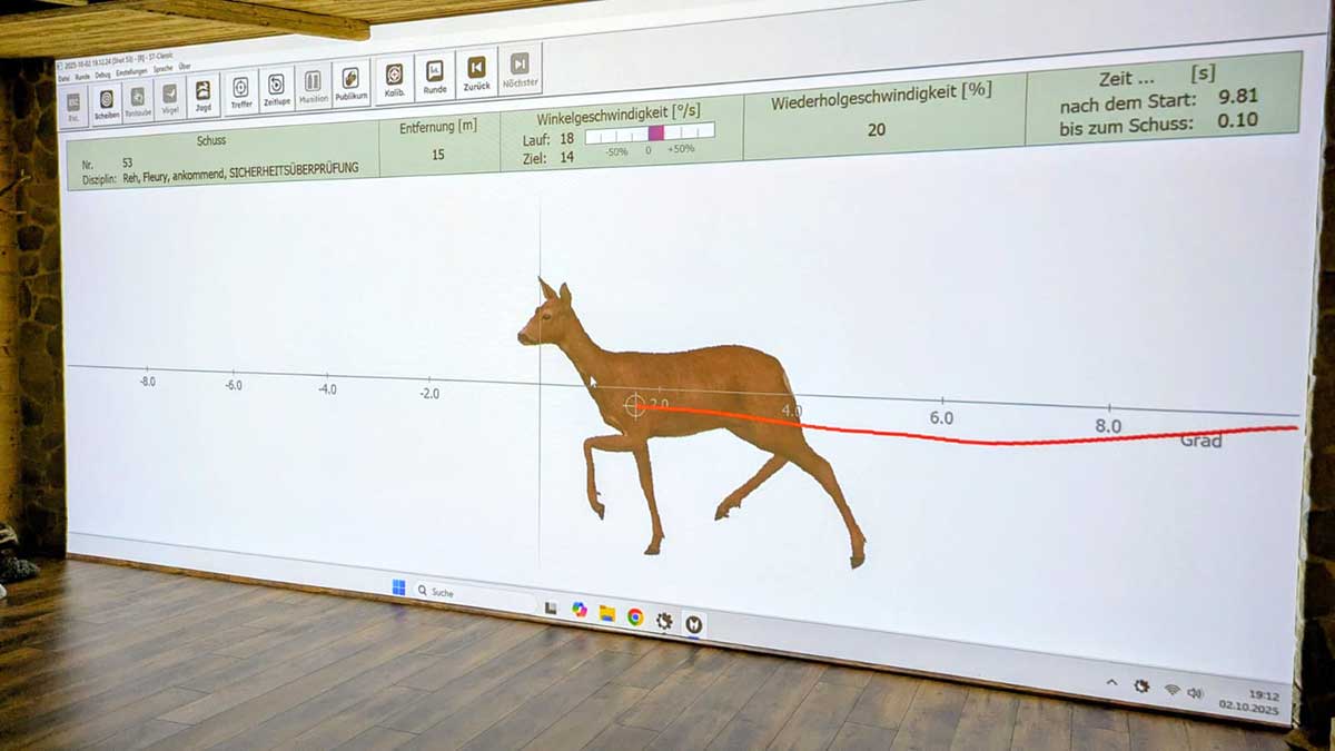 Drückjagd-Riegeljagd – bei dieser Art von Training kommt es auf die Einschätzung der Entfernung und Geschwindigkeit an. Es können verschiedene Einstellungen durchgeführt werden, bei denen die Sau oder der Hirsch zufällig in Distanz, Richtung und Geschwindigkeit erscheinen, auch der Hintergrund ist je nach Wunsch individuell einstellbar. Weites ist es möglich das Wild durchsichtig zu zeigen, damit der Schütze die Organe sieht. Bei uns begeben Sie sich auf eine nahezu reale Bewegungs-Jagd!