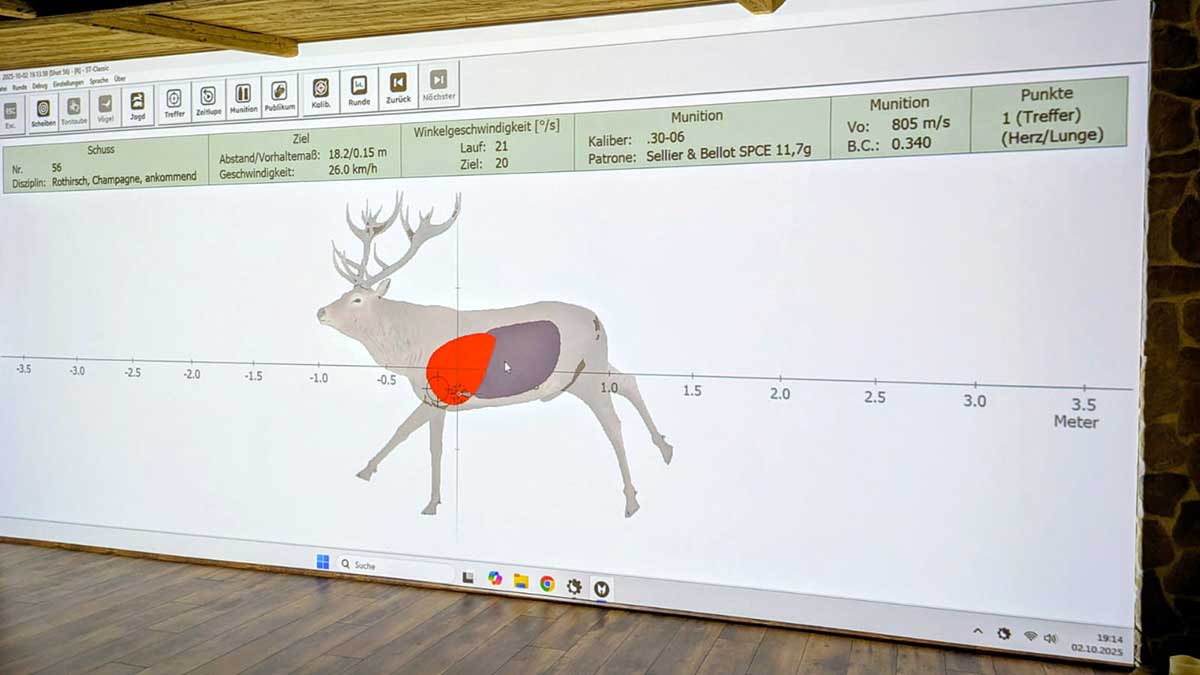 Ballistikdaten integriert: Über 550 Munitionsarten sind hinterlegt – für realistische Vorhaltemaße.